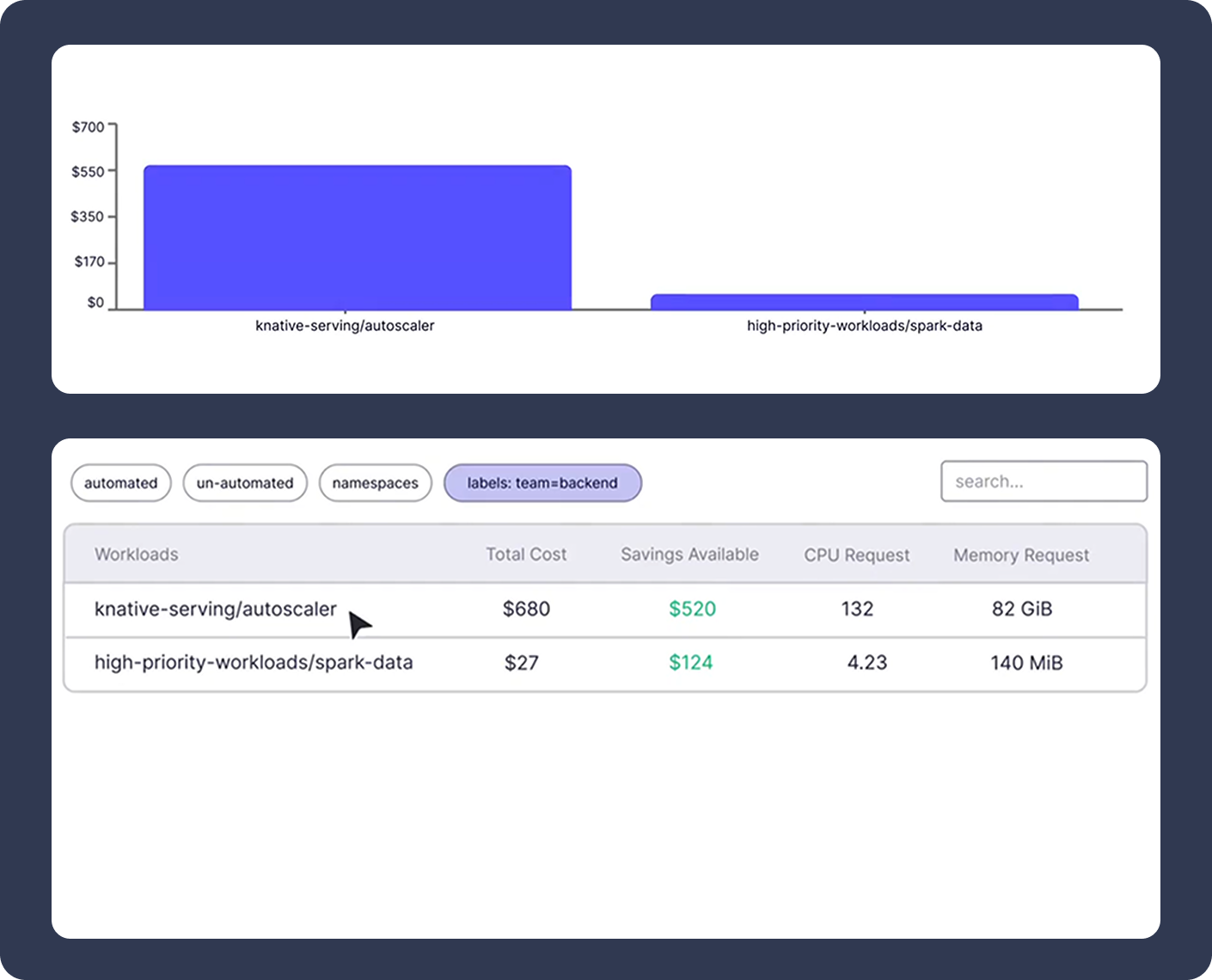 Kubotu analyzes cloud resource costs, including CPU, memory, network, and GPU, and provides recommendations for optimization.